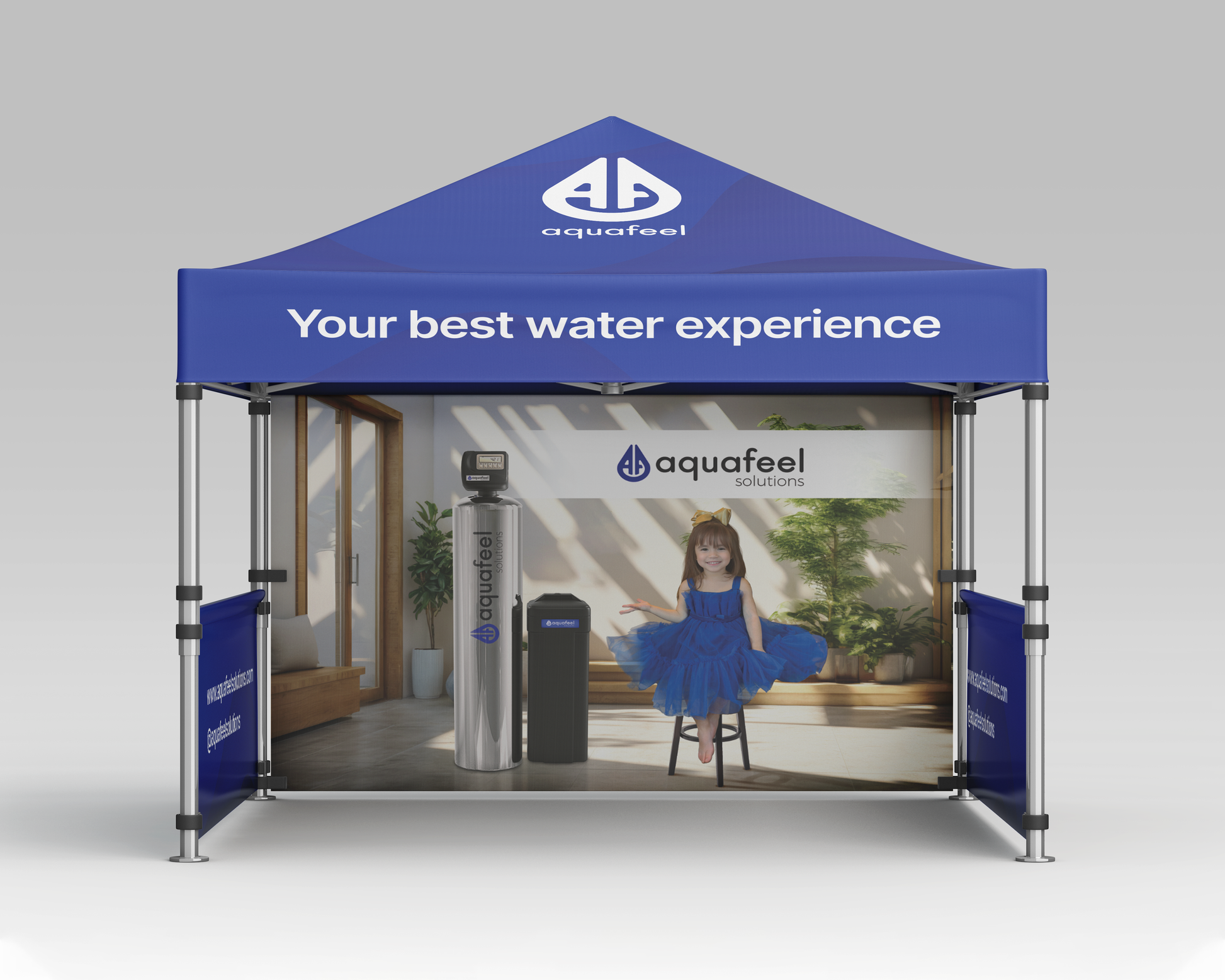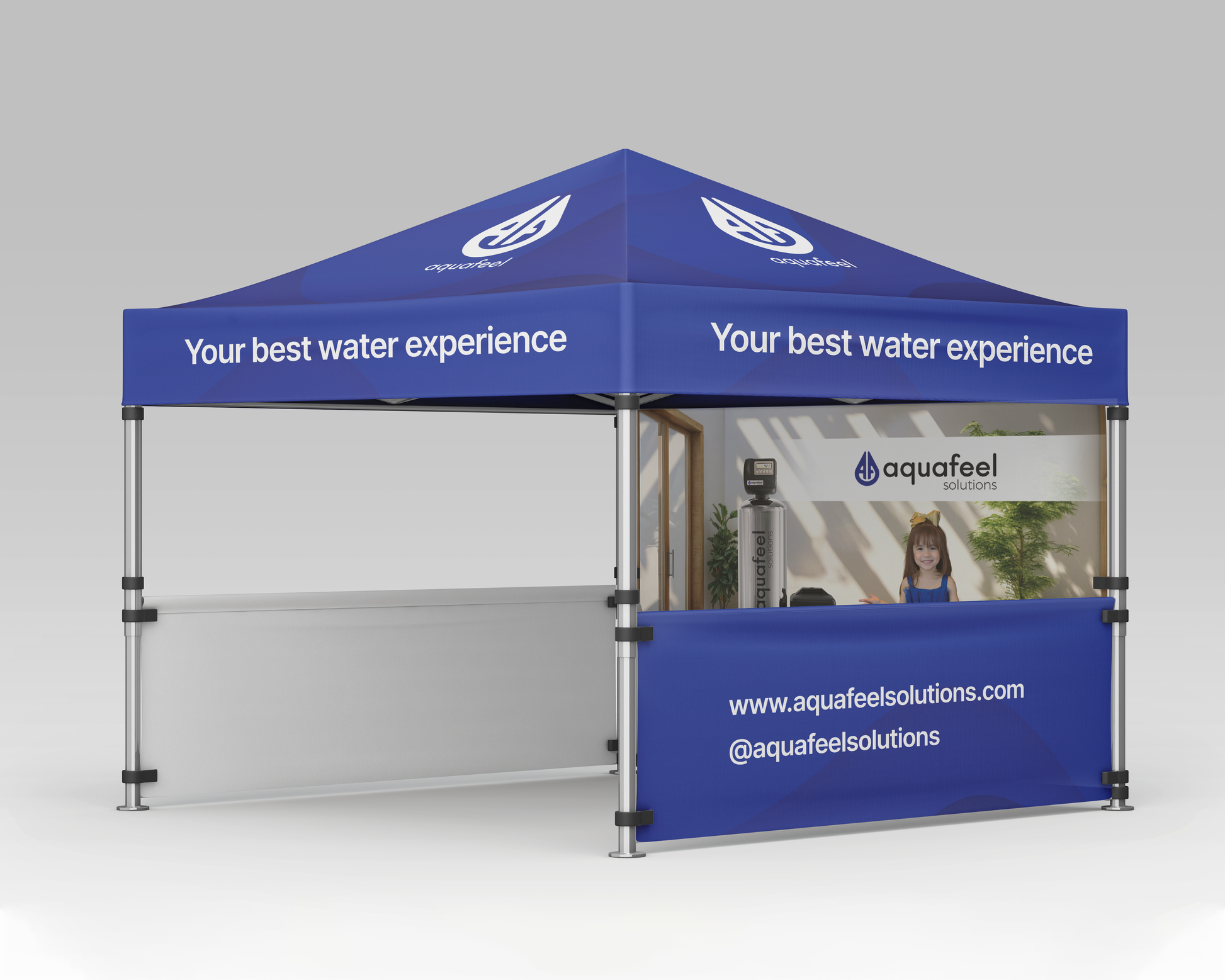 Promociona la marca Aquafeel en cualquier evento o lugar con la versátil tienda Aquafeel. Perfecta para cualquier ocasión, esta carpa brindará refugio y al mismo tiempo exhibirá su marca. Haz una declaración y destaca del resto.